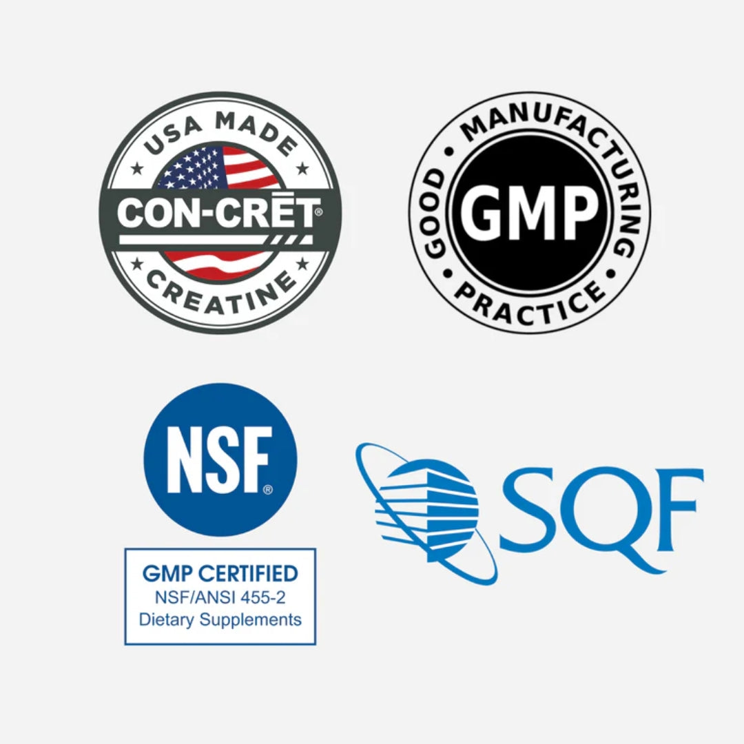 CON-CRĒT® is the first and only creatine manufactured in the USA. Our facility is NSF Good Manufacturing Certified and Safe Quality Food Certified, so you can be confident that it is made with the upmost care and precision.